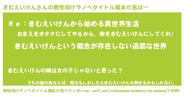 | 意味不明あだ名 | 『永久保存きむえいけん』 |