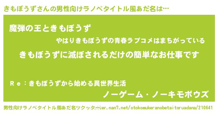 | 意味不明あだ名 | 『住所不定無職きもぼうず(7歳)』 |