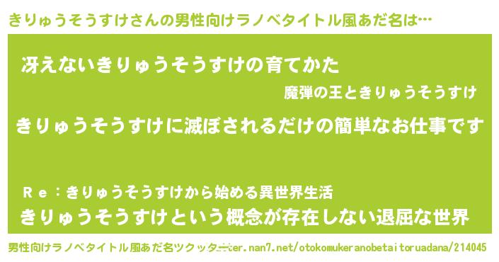 | 意味不明あだ名 | 『永久保存きりゅうそうすけ』 |
