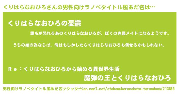 | 女子向けラノベタイトル風あだ名 | 『くりはらなおひろ伯爵の花嫁』 |