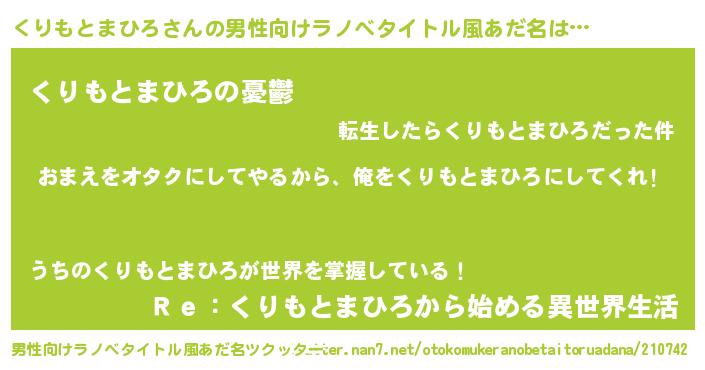 | 胡散臭い通販商品みたいなあだ名 | 『100人中100人が認めたイリジウム磁石…その名も「くりもとまひろ」』 |