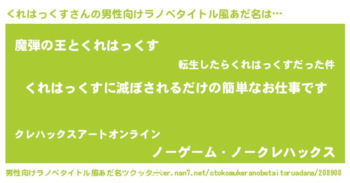 | 意味不明あだ名 | 『住所不定無職くれはっくす(12歳)』 |