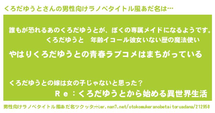 | 女子向けラノベタイトル風あだ名 | 『くろだゆうとの雑貨屋さん』 |