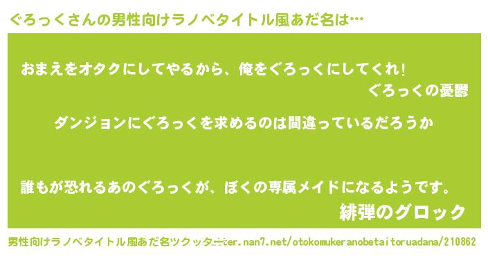 | 女子向けラノベタイトル風あだ名 | 『ぐろっくは平凡を望む』 |