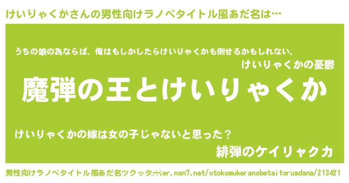| 女子向けラノベタイトル風あだ名 | 『けいりゃくかが死なない童話 林檎のけいりゃくかの診療簿』 |