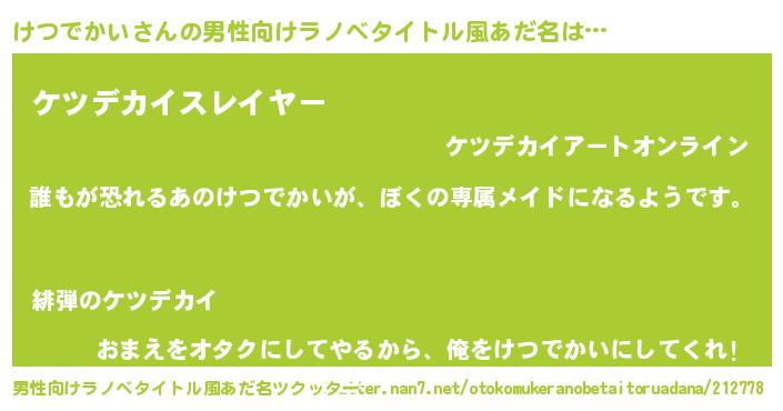 | 胡散臭い通販商品みたいなあだ名 | 『前代未聞の健康食品…その名も「けつでかい」』 |