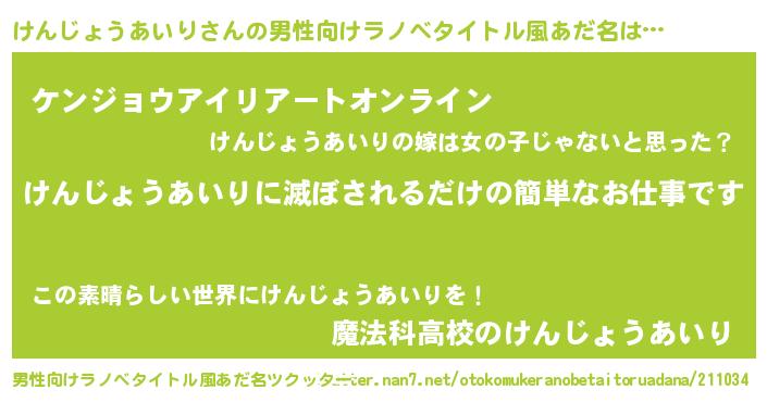 | ヒーロー風カッコイイあだ名 | 『スーパーケンジョウアイリ』 |