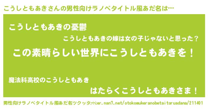 | 意味不明あだ名 | 『住所不定無職こうしともあき(62歳)』 |