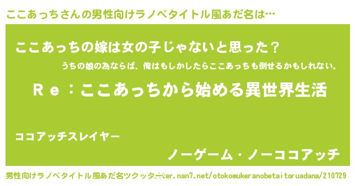 | 意味不明あだ名 | 『自称ここあっち』 |
