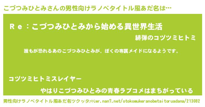 | 女子向けラノベタイトル風あだ名 | 『異世界でカフェこづつみひとみを開店しました。』 |