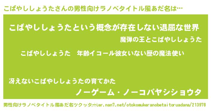 | 意味不明あだ名 | 『ニラ科こばやししょうた属』 |