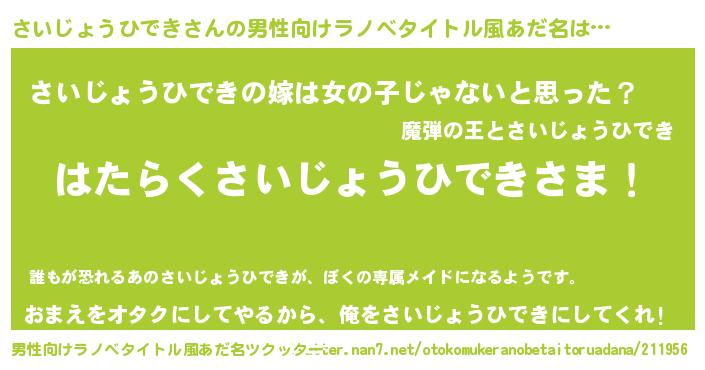 | 胡散臭い通販商品みたいなあだ名 | 『信頼と実績のペンダント…その名も「さいじょうひでき」』 |