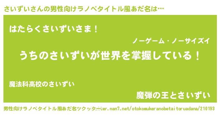 | 市区町村名 | 『さい田谷区』『名古さい市』 |
