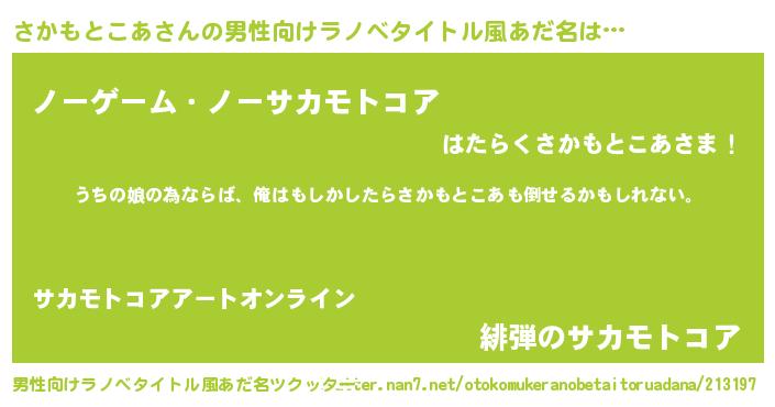 | 女子向けラノベタイトル風あだ名 | 『さかもとこあの婚約者』 |
