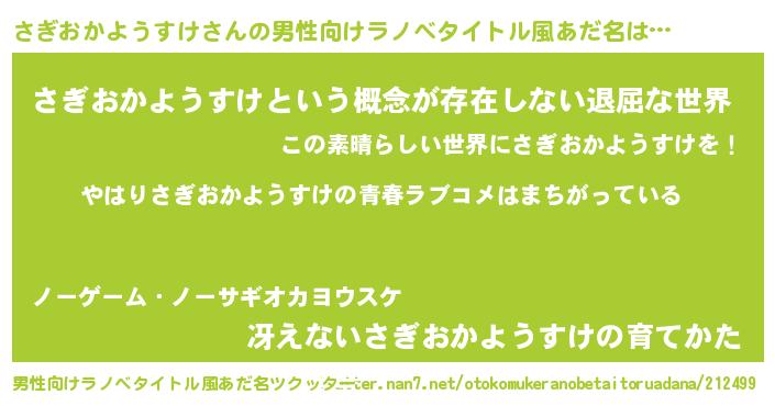 | 意味不明あだ名 | 『さぎおかようすけフォーエバー』 |