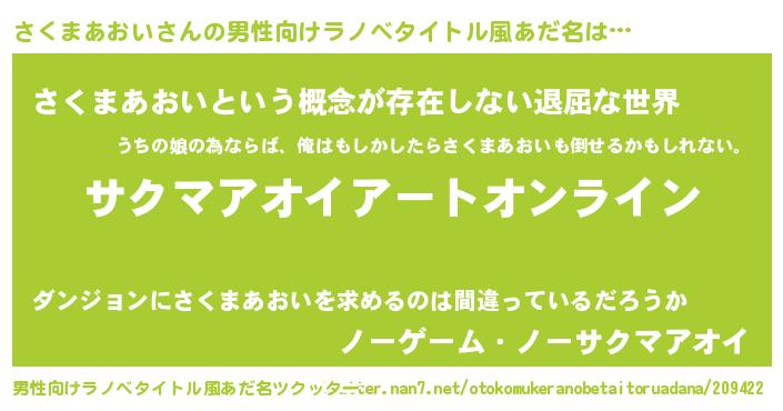 | 女子向けラノベタイトル風あだ名 | 『さくまあおい姫と円卓の騎士』 |