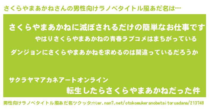 | 意味不明あだ名 | 『とにかく怪しいさくらやまあかね』 |