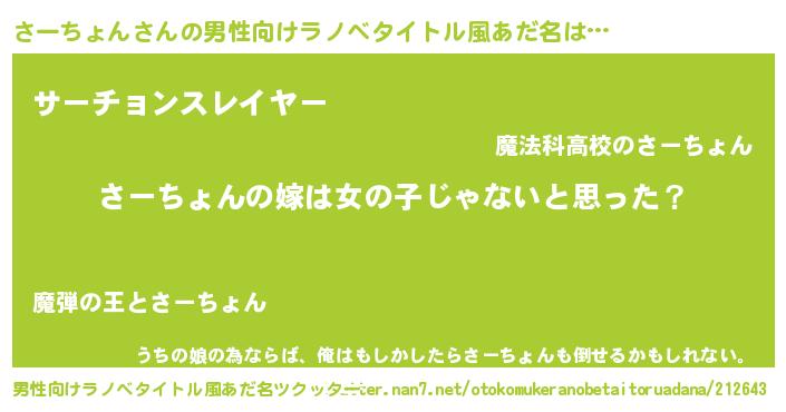 | 女子向けラノベタイトル風あだ名 | 『さーちょん様がみてる』 |