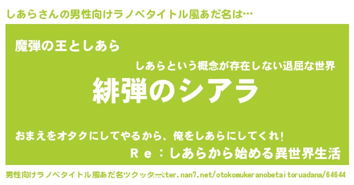 | 女子向けラノベタイトル風あだ名 | 『シンデレラしあら家の靴箱館』 |