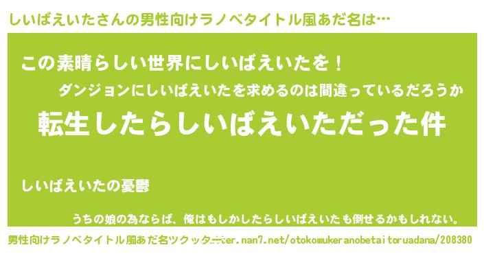 | 胡散臭い通販商品みたいなあだ名 | 『世界中を虜にした100年もののヴィンテージワイン…その名も「しいばえいた」』 |