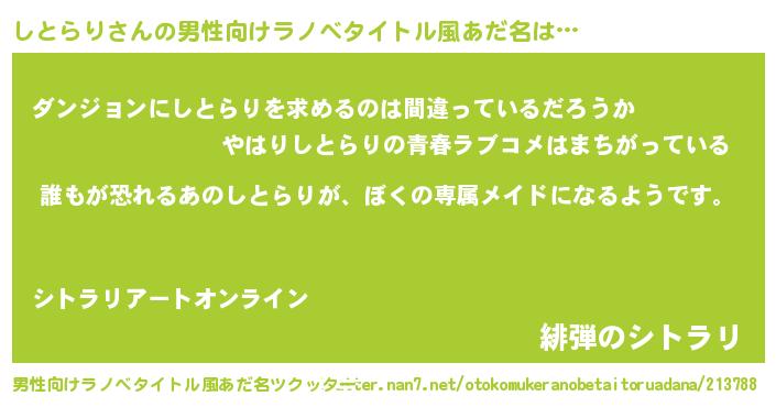 | 女子向けラノベタイトル風あだ名 | 『異世界でカフェしとらりを開店しました。』 |