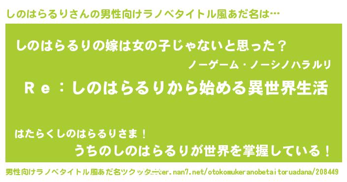 | 意味不明あだ名 | 『自称しのはらるり』 |
