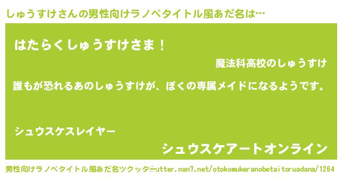 | ヘコむあだ名 | 『しゅうすけ(小並感)』『しゅにゅー』 |