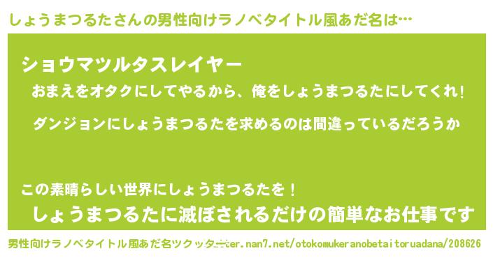 | 胡散臭い通販商品みたいなあだ名 | 『信頼と実績のペンダント…その名も「しょうまつるた」』 |