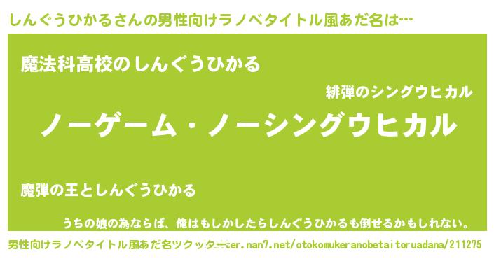 | ヒーロー風カッコイイあだ名 | 『慈愛の使者しんぐうひかる』 |