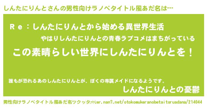 | 女子向けラノベタイトル風あだ名 | 『乙女ゲームの破滅フラグしかない悪役しんたにりんとに転生してしまった…』 |