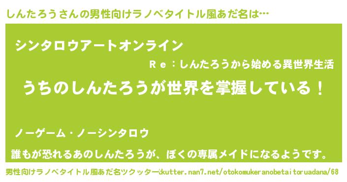 女子向けラノベタイトル風あだ名 | 『男装しんたろうの憂鬱な任務』 |