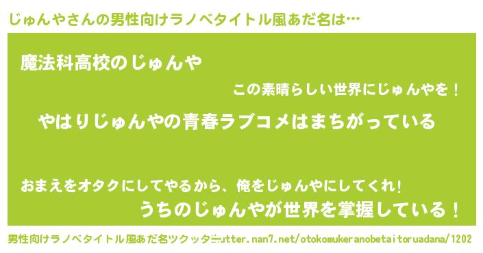 女子向けラノベタイトル風あだ名 | 『じゅんやの雑貨屋さん』 |