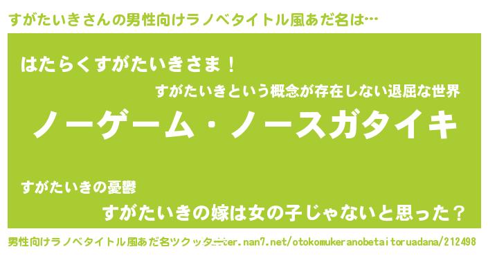 | 女子向けラノベタイトル風あだ名 | 『死神すがたいきの再婚』 |