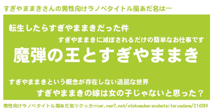 | 意味不明あだ名 | 『住所不定無職すぎやままき(3歳)』 |
