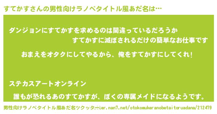 | 女子向けラノベタイトル風あだ名 | 『すてかす夫妻のなれそめ』 |
