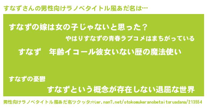 | 女子向けラノベタイトル風あだ名 | 『すなずの玉の輿計画!』 |
