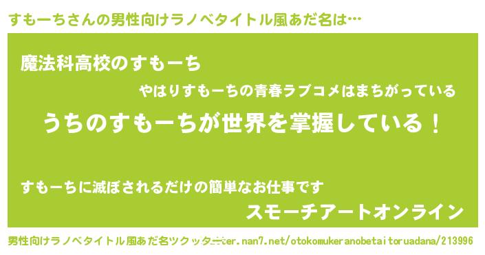 | 意味不明あだ名 | 『自称すもーち』『ペロリンすもーち』 |