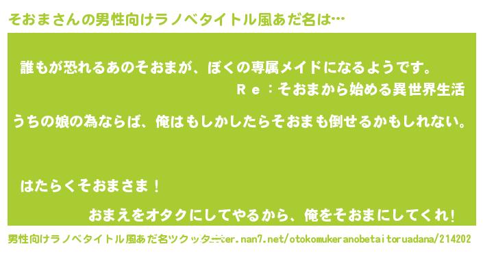 | ヘコむあだ名 | 『なまこ酢』『そおま(笑)』『そおお』 |