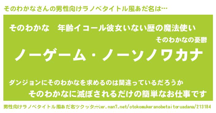 | ヒーロー風カッコイイあだ名 | 『天空の使者そのわかな』『幻影騎士ソノ』 |
