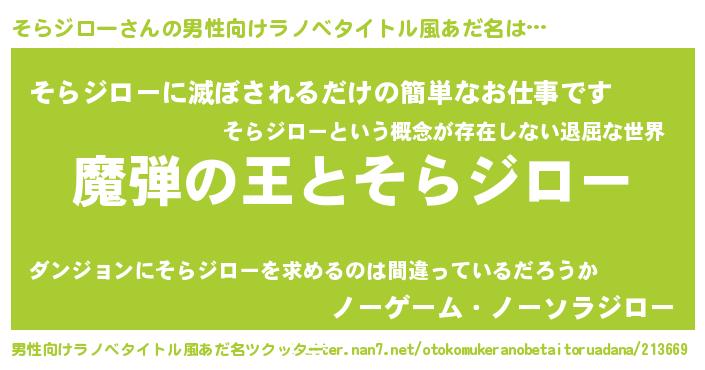 | 女子向けラノベタイトル風あだ名 | 『そらジローが死なない童話 林檎のそらジローの診療簿』 |
