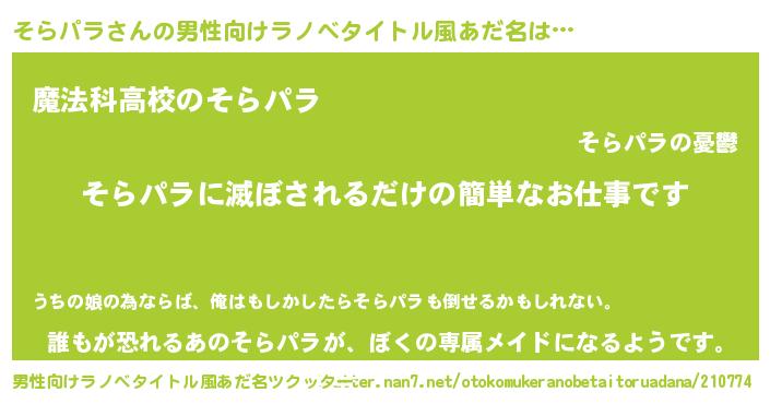 | 意味不明あだ名 | 『自称そらパラ』『永久保存そらパラ』 |