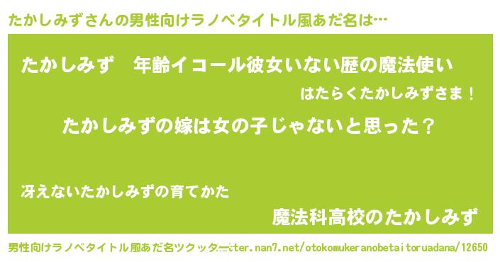 | ヒーロー風カッコイイあだ名 | 『天弓騎士タカ』『超時空戦士タカシミズ』 |