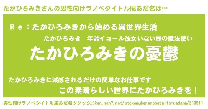 | 胡散臭い通販商品みたいなあだ名 | 『モテモテ間違いなし霊験あらたかなお札…その名も「たかひろみき」』 |
