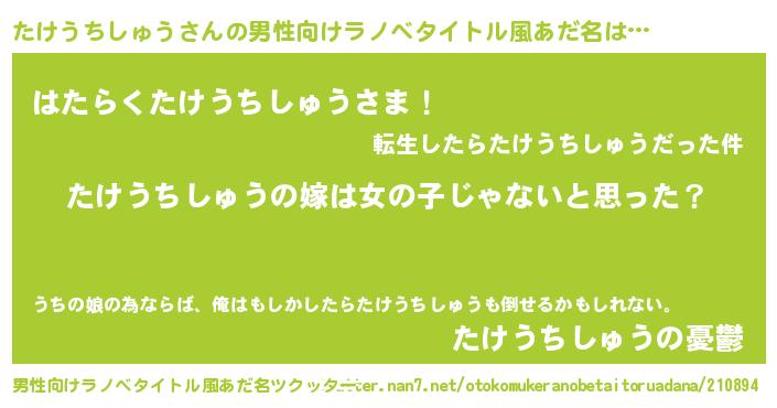 | 胡散臭い通販商品みたいなあだ名 | 『伝統あるサプリメント…その名も「たけうちしゅう」』 |