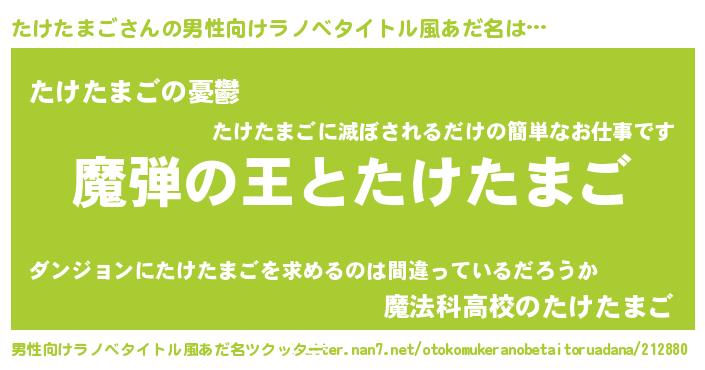 | 意味不明あだ名 | 『住所不定無職たけたまご(2歳)』 |