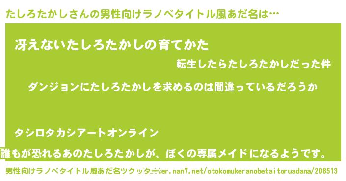 | 女子向けラノベタイトル風あだ名 | 『たしろたかしは平凡を望む』 |