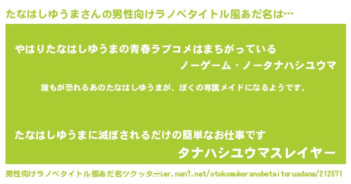 | 意味不明あだ名 | 『永久保存たなはしゆうま』 |