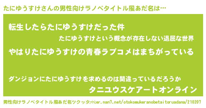 | 胡散臭い通販商品みたいなあだ名 | 『世界が平和になる高級そうな壺…その名も「たにゆうすけ」』 |