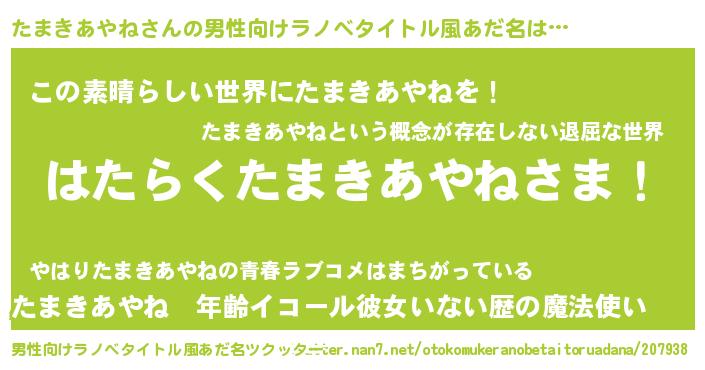 | 肩書あだ名 | 『たまきあやねディレクター』 |