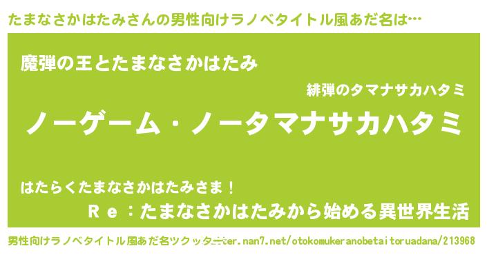 | 女子向けラノベタイトル風あだ名 | 『死神たまなさかはたみの再婚』 |